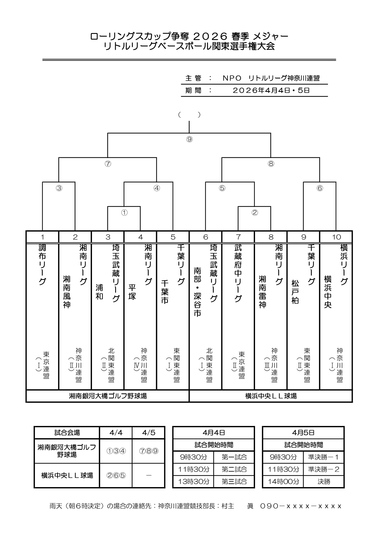 ローリングスカップ争奪2026春季メジャーリトルリーグベースボール関東選手権大会